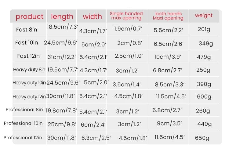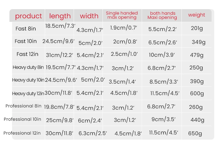 • Kompaktowy rozmiar:Dostępne w rozmiarach 8, 10 i 12 cali, te szczypce są kompaktowe, a jednocześnie uniwersalne, co ułatwia ich przechowywanie i transport w miejscu pracy.